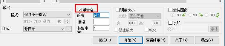 4、我们先勾选【重命名】选项,选用重命名的功能。