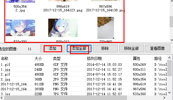 3、用户可以在【目标中的图像列表】中预览图像文件,并支持自定义添加要重命名的图片,或者选择添加全部。