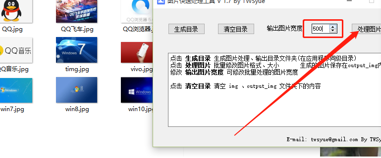 4.点击将图片添加到imgs这个文件夹之后,我们就可以在软件的主界面中设置输入想要修改的图片宽度了,输入完成之后点击处理图片这个按钮。