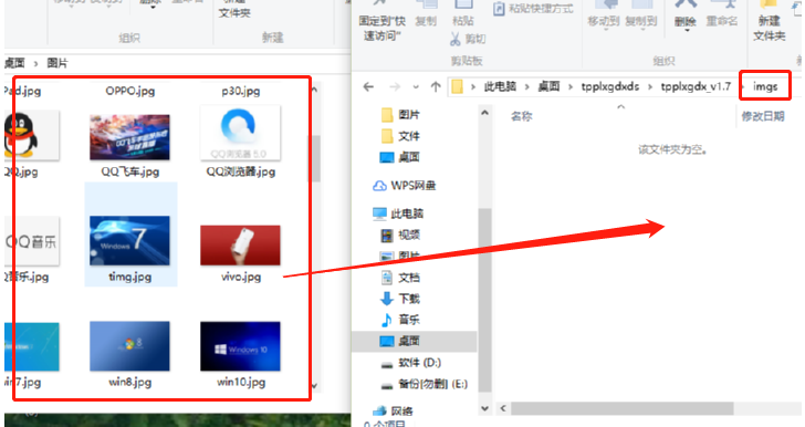 3.下一步就是打开imgs这个文件夹,然后将自己要修改大小的图片添加到其中,可以复制粘贴也可以直接拖动到其中。