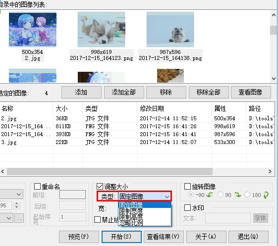 5、类型,其提供了固定图像、限制宽度、限制高度等多种调整类型。