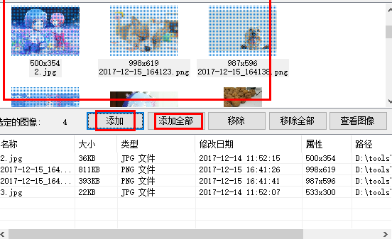 3、用户在目录下的图像列表中选择要处理的图片文件,然后点击【添加】按钮,若用户还可以直接点击【添加全部】。