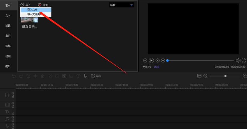 1.首先第一步我们打开软件之后在界面的左上角找到导入选项并点击,点击导入之后,我们在出现的选项中点击导入文件。