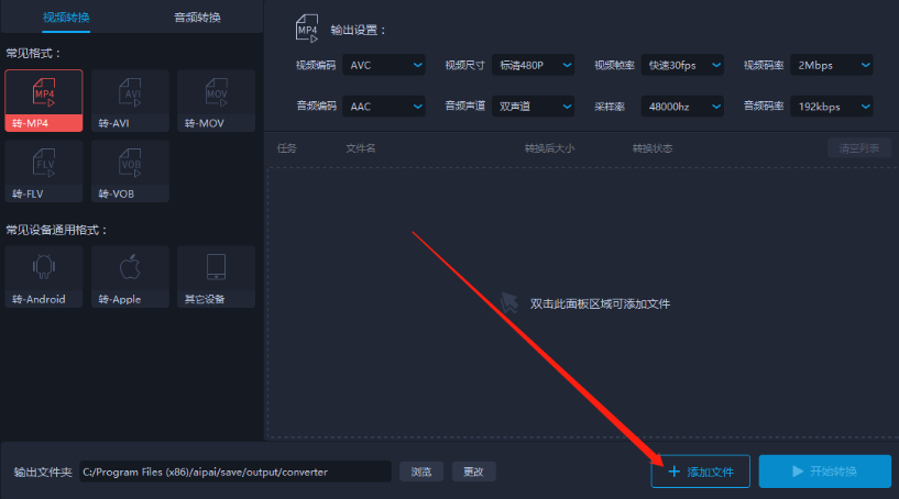2.进入到转换功能界面之后,需要在界面的右下角点击添加文件这个功能,点击添加文件之后可以选择想要转换格式的MP4视频。