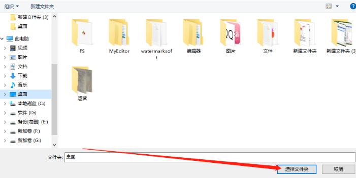 6.点击更改按钮之后,下一步会出现一个选择文件的界面,在这个界面中我们选中目标文件输出路径之后点击选择文件夹按钮。