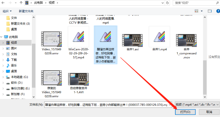 3.点击添加文件按钮之后,接下来在出现的选择文件界面中,选中想要处理的MP4视频文件之后,点击右下角的打开按钮即可。