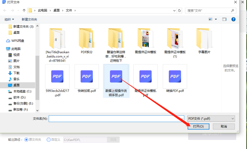 3.点击添加文件之后打开一个选择文件的界面,在界面中选择目标PDF文件之后点击界面右下角的打开按钮。