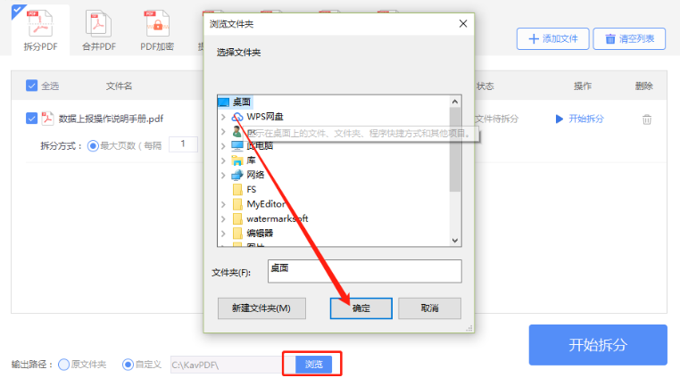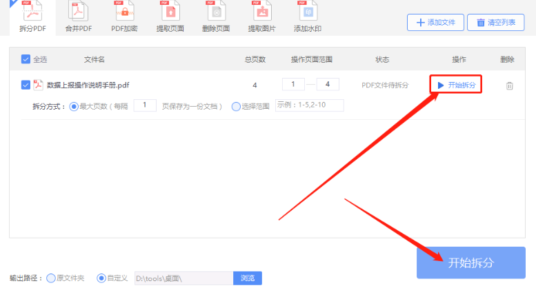 6.设置好输出路径之后,我们点击文件右边的开始拆分按钮或者是界面右下角的开始拆分按钮都可以开始拆分文件的操作。