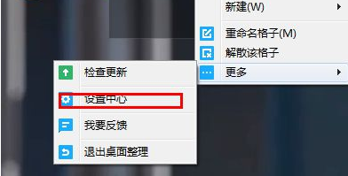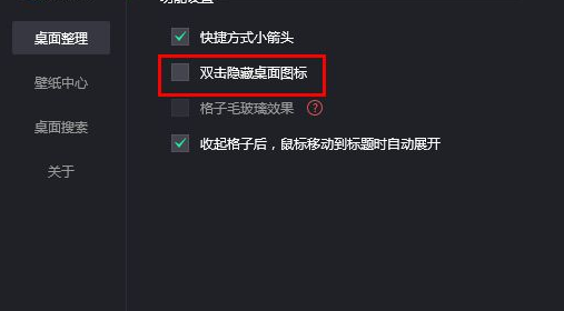 9、进入设置中心之后可以看见有基础设置、壁纸中心、桌面搜索等功能板块,点击选择“桌面整理”,然后在“双击隐藏桌面图标”前面的框打上勾。