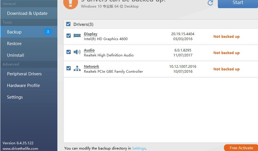 5、升级之后还可以利用备份按钮来将已经下载好的驱动进备份
