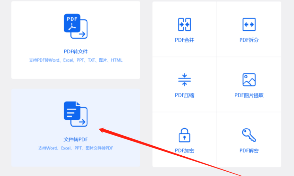 1.首先第一步我们打开软件之后在界面中点击文件转PDF功能按钮,进入到文件转PDF的功能模块中。