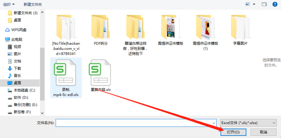 3.点击加号之后接下来会打开一个选择文件的界面,我们选中Excel文件之后点击右下角的打开按钮即可。