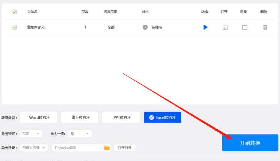 6.最后在设置好输出保存格式之后,点击界面右下角的开始转换按钮就可以开始将Excel转换成PDF的操作方法了,有需要的朋友赶紧试一试小编分享的方法吧,希望能帮助到大家。