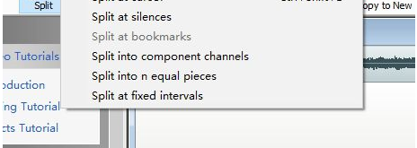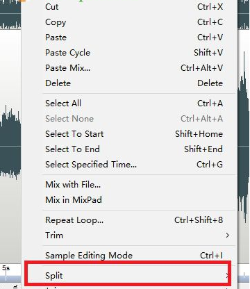 9、除了使用右键单击可以分割音频文件之外,大家也可以使用“edit”选项卡中的分割按钮来将音频切割开
