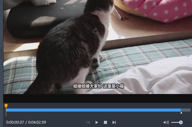 4、打开之后在右侧的时间进度上我们可以看见视频文件已经组合在一起了,可以通过播放按钮来预览效果