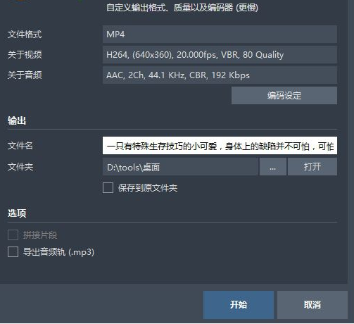 8、导入视频文件之后可以使用鼠标来移动它的显示位置,请按照视频的播放先后顺序来排列视频文件,设置好位置之后点击右下角的“开始”按钮进行导出操作