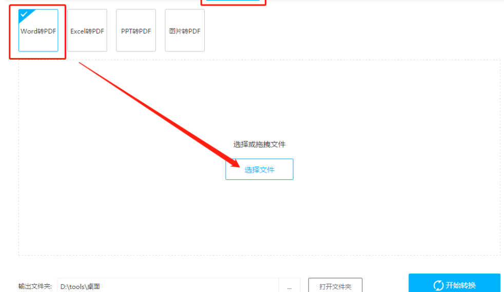 1.首先第一步我们打开软件之后在软件的主界面中,找到转为PDF这个功能选项,选中Word转PDF之后点击界面中的选择文件按钮。
