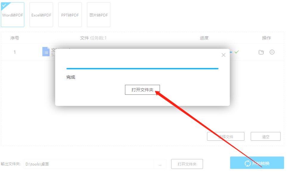 6.等到最后转换操作完成之后,我们在界面中就可以看到一个转换完成的提示,点击打开文件夹按钮即可查看转换之后的文件。