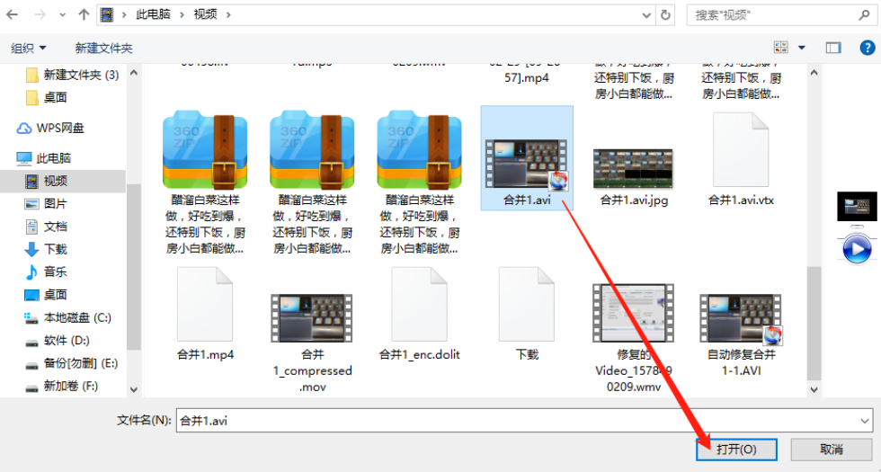 4.点击加片头的选择按钮之后,在出现的界面中选中制作好的片头文件,选中之后点击右下角的打开按钮。