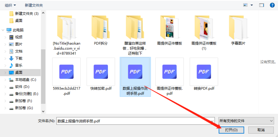 2.打开选择文件的界面之后,我们在出现的界面中选中目标PDF文件,选中之后点击右下角的打开按钮即可。