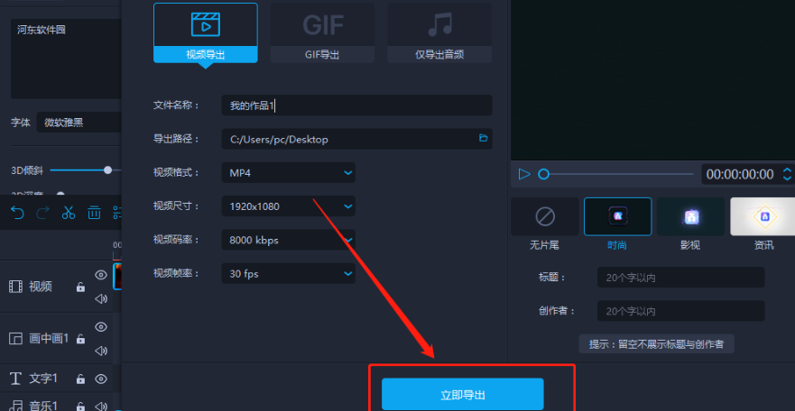 8.在导出保存的界面中我们根据自己的需求设置好参数之后,点击界面右下角的立即导出这个功能按钮就可以将视频导出保存了。
