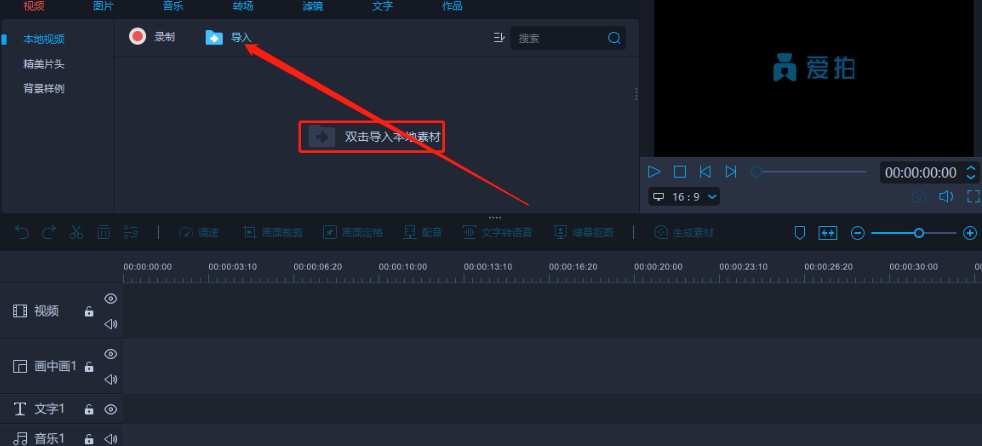 2.点击进入到编辑视频界面之后,我们点击导入按钮或者双击下图中框出的区域,准备导入想要处理的视频文件。