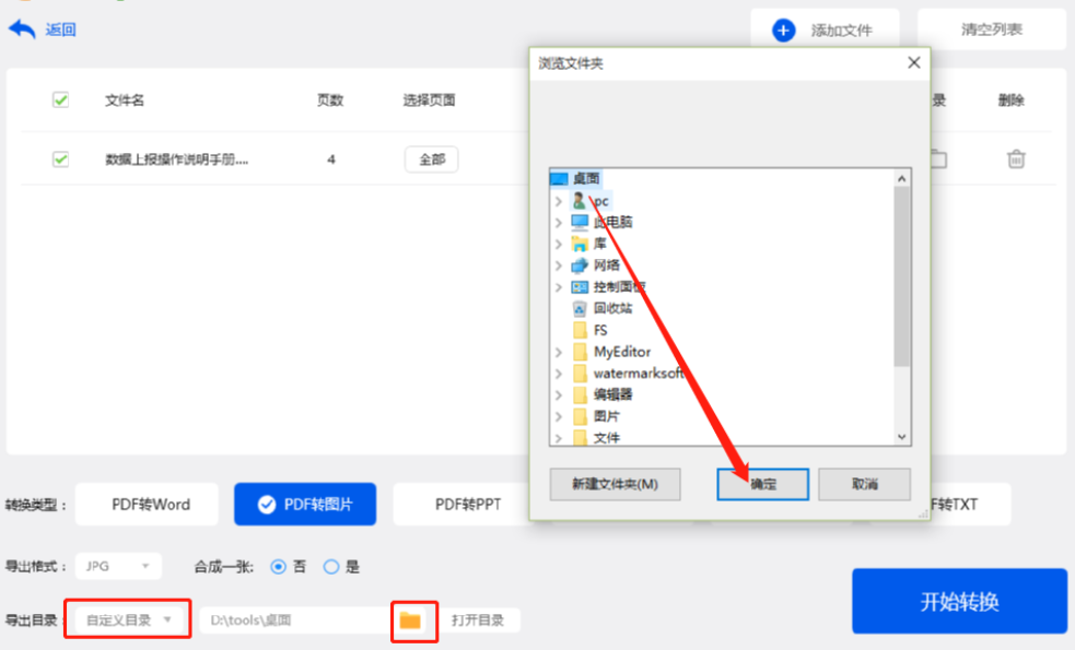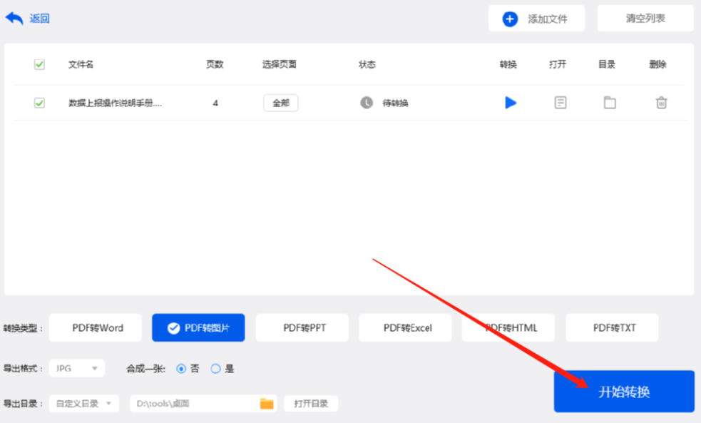 6.最后设置好转换文件的储存路径之后,点击界面右下角的开始转换按钮就可以开始转换PDF文件为图片的操作了。