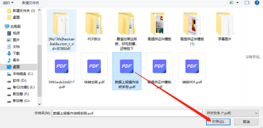 3.点击这个加号图标之后,下一步我们在界面中选中想要转换的PDF文件,选中之后点击右下角的打开按钮即可。