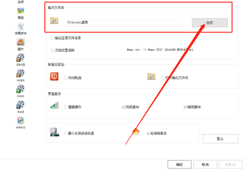 2.进入到软件的选项设置界面之后我们就可以看到输出文件夹这个模块了,然后我们需要点击其中的改变按钮。