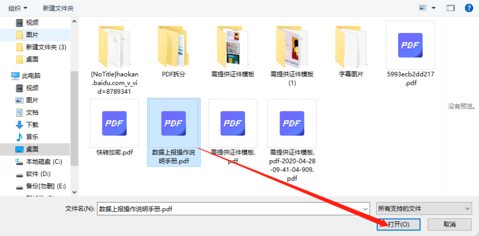 2.点击加号之后就会打开选择文件的界面了,我们选中自己想要添加到收藏夹的那一个PDF文件,选中之后点击打开按钮。