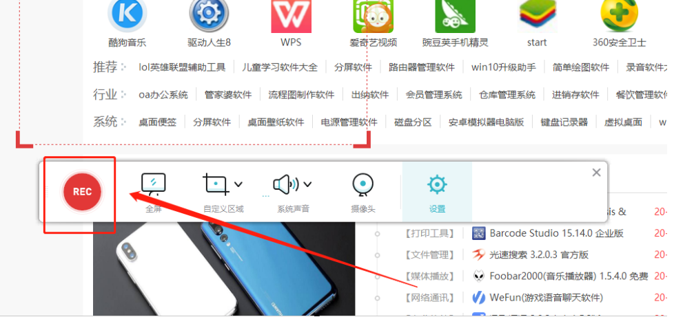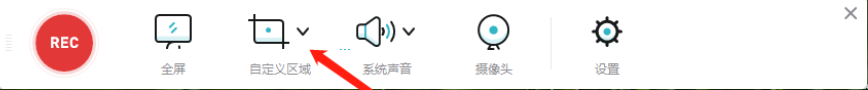 2.录制插件安装完成之后就会自动打开下图所示的一个录制操作界面,我们点击其中的自定义区域这个功能选项。