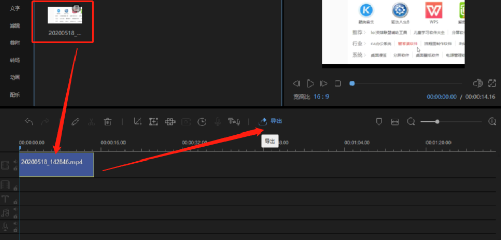 6.停止录制之后录制的视频会直接出现在视频编辑王的主界面,将它拖动到下方的编辑操作台上面之后即可进行编辑操作,编辑完成之后点击导出按钮即可保存这个录制的视频。