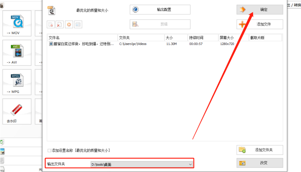 7.设置好自定义输出文件夹之后,我们点击界面右上方的确定这个功能按钮,如下图中所示。