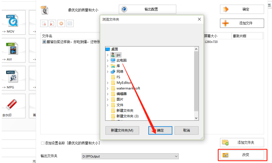 6.点击这个确定按钮之后进入到下图所示的界面,然后我们点击改变按钮可以在出现的界面中自定义输出文件夹。