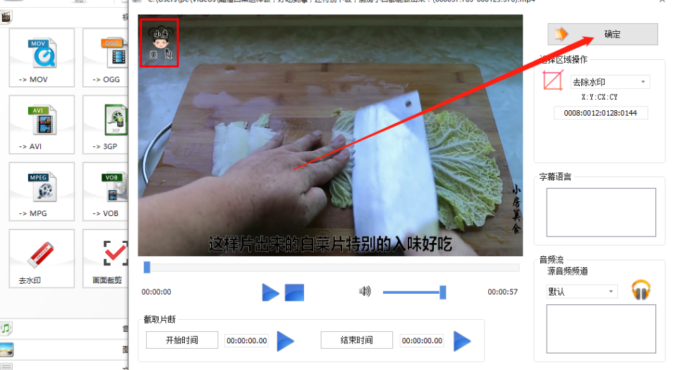 5.想要去除水印的位置选择完成之后,我们就可以点击这个水印设置界面上的确定按钮了。