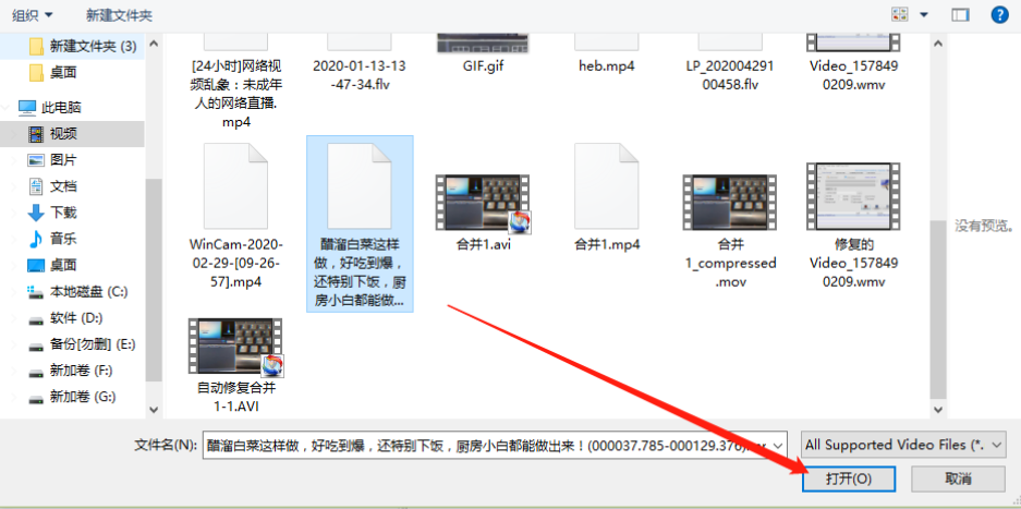 3.点击确定按钮之后下一步会打开一个选择文件的界面,在这个界面中我们选择目标视频文件之后点击打开按钮。
