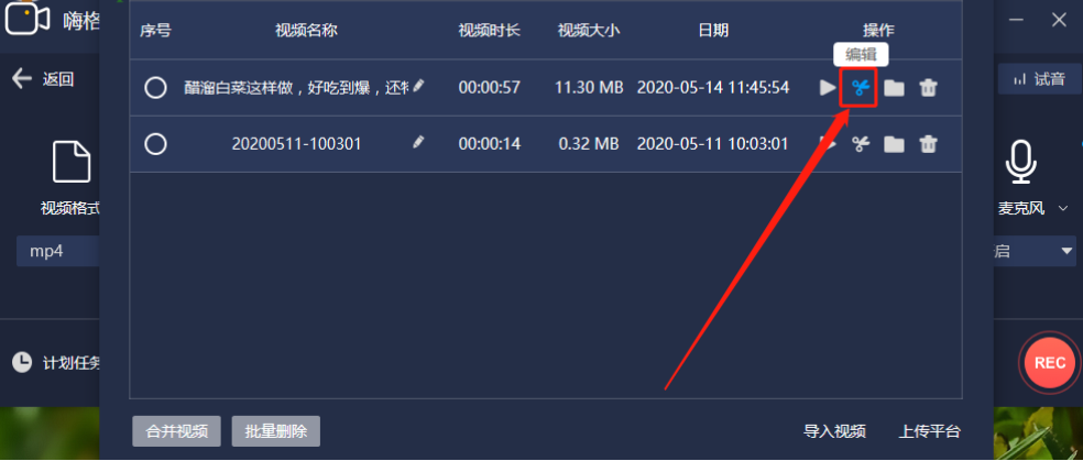 3.点击打开视频列表之后,我们选择想要分割的视频,点击它后面的剪刀图标进入到分割视频的操作界面中。