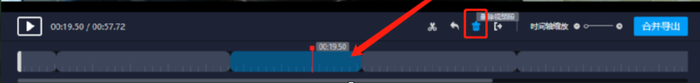 6.将分割的视频删除到只剩下自己想要的那一段视频之后,点击右边的合并导出按钮即可将分割之后的视频导出保存到电脑。