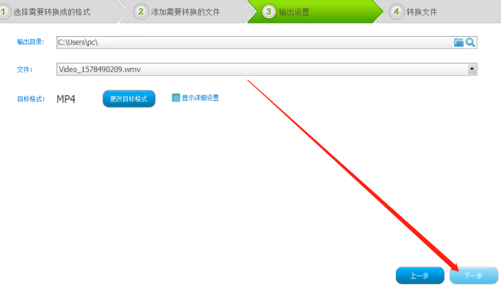 6.设置好输出目录之后下一步就可以点击界面右下角的下一步按钮开始转换视频格式的操作了。