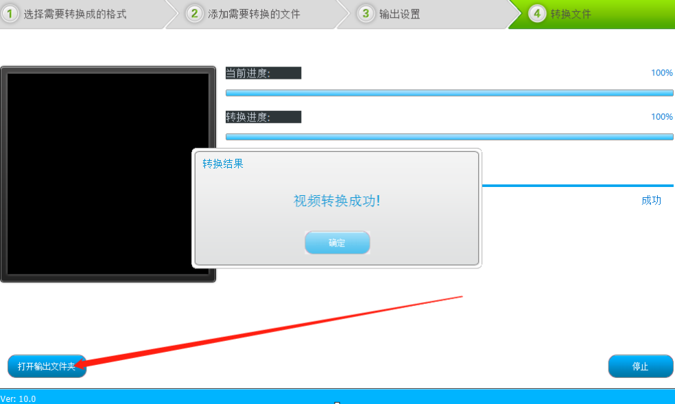 7.等到转换操作完成之后,我们在界面中就可以看到视频转换成功的提示了,点击界面中的打开输出文件夹按钮即可查看转换之后的视频文件。