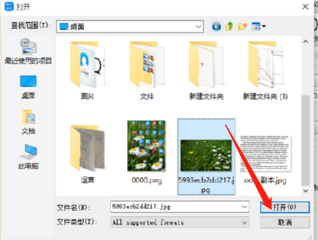 2.点击打开照片之后会出现一个选择文件的界面,在这个界面中我们选中目标图片文件之后点击打开按钮即可。