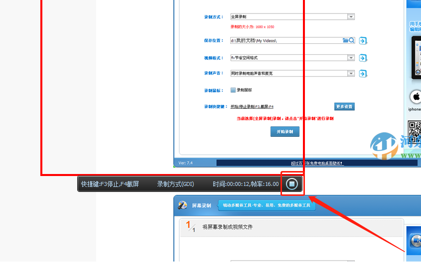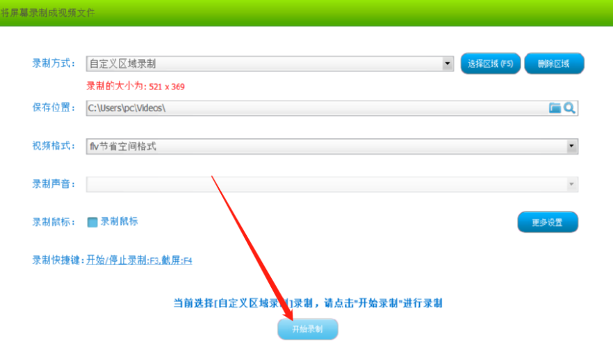 6.设置好这些录制视频的参数之后,我们点击开始录制这个功能按钮就可以开始录制视频的操作了。