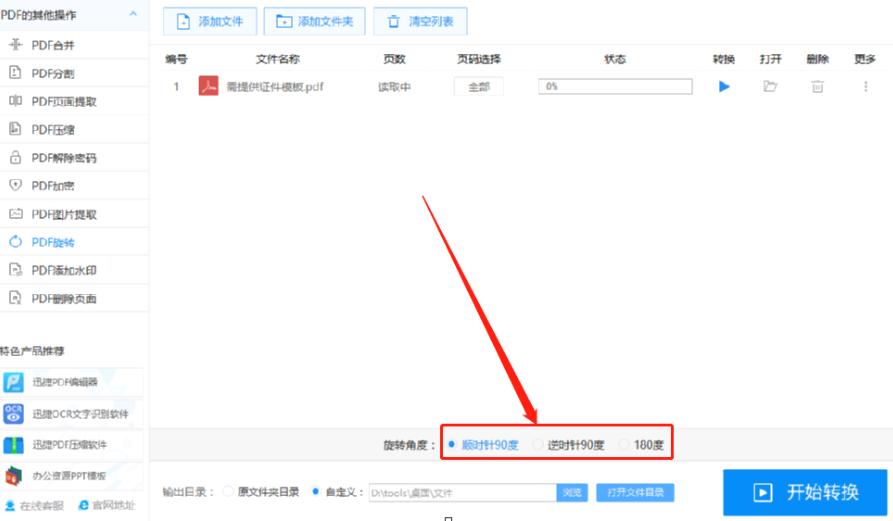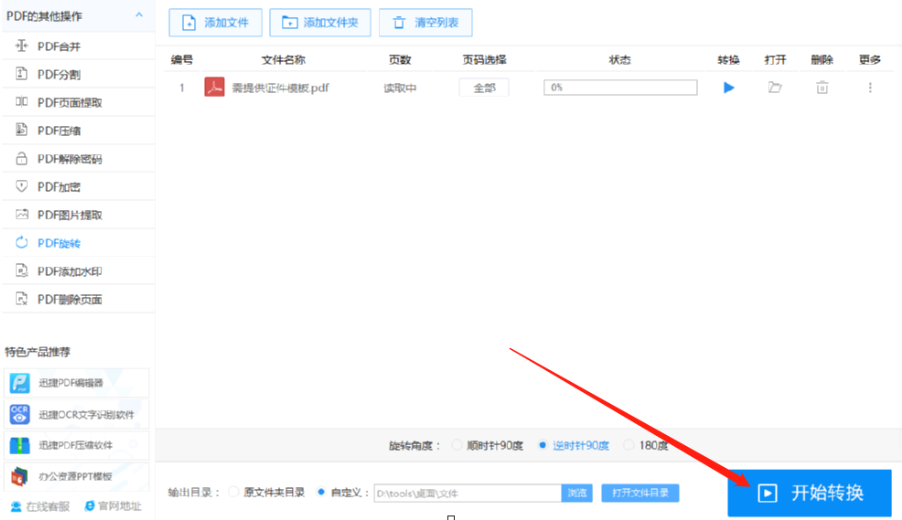 5.设置好保存目录之后,我们点击界面右下角的开始转换按钮即可开始旋转PDF文件页面的操作。