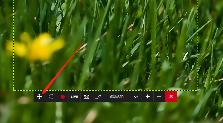 3.设置好录制的区域并且移动到自己想要录制的位置之后,我们点击选框下排功能图标中的红色圆点即可开始录制。