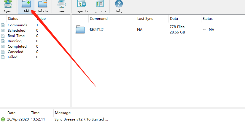 1.首先第一步我们打开软件之后点击界面左边的Add 这个添加按钮,点击之后即可添加一个同步任务。