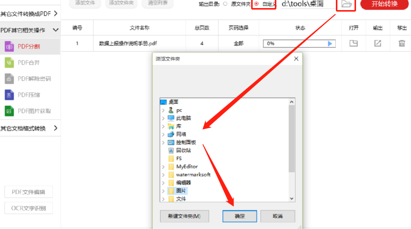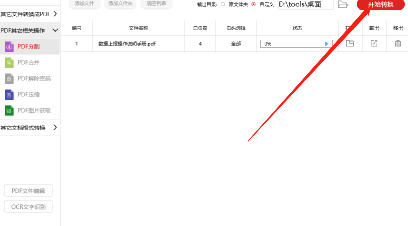 4.设置好输出目录之后我们点击界面右上角的开始转换按钮就可以开始分割PDF文件的操作了,如下图中所示。