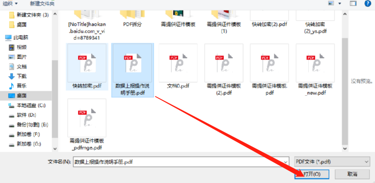 2.点击这个添加文件按钮之后下一步就会打开一个选择文件的界面了,然后我们在这个界面中选中想要分割的PDF文件并点击打开。