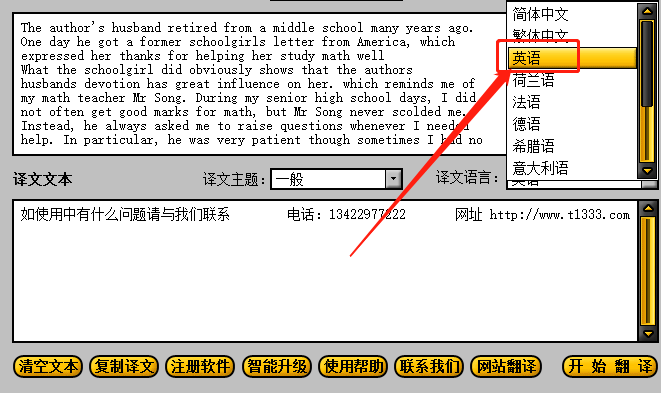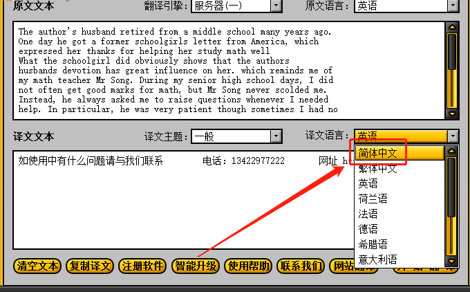 3.紧接着下一步我们在译文语言这个选项的下拉列表中将译文语言选择为简体中文,如下图中所示。