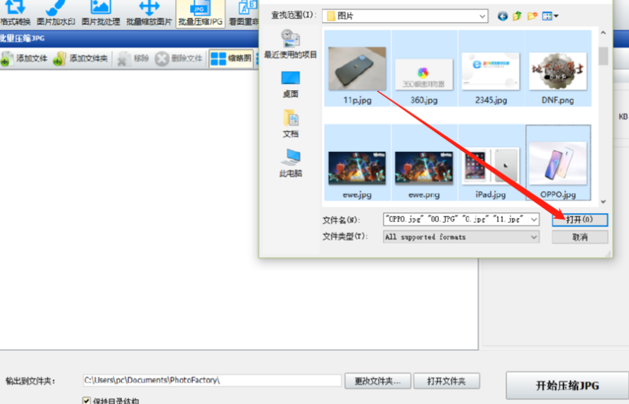 2.点击添加文件之后在出现的选择文件界面中我们选中想要压缩的图片并点击右下角的打开按钮。