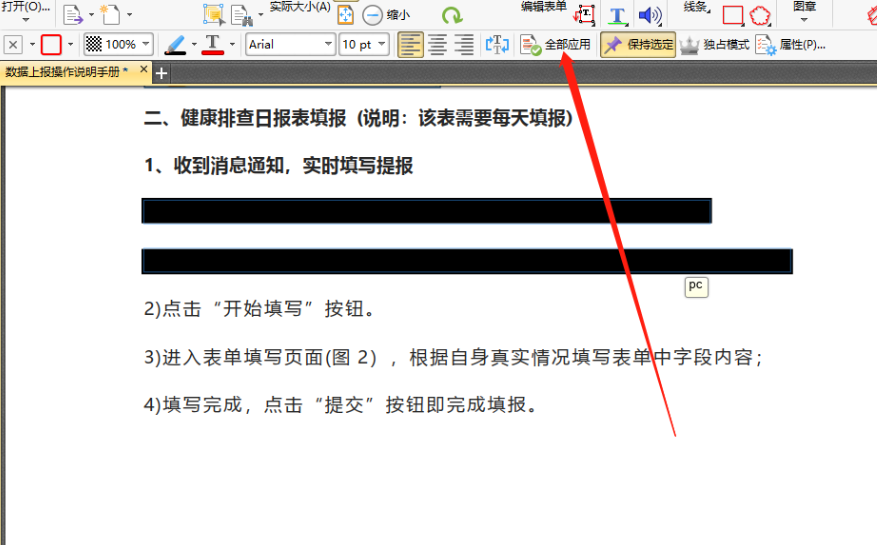 5.点击标记加密部分之后我们选取的想要加密的文字内容就会变成被标记的状态了,然后我们点击上方的全部应用这个按钮。